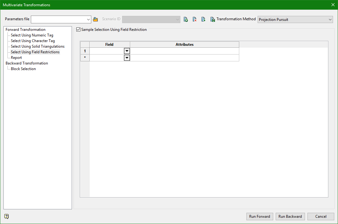 Select this checkbox to limit the samples to those with fields that match certain selection criteria. Select a Field from the drop-down list and enter applicable selection criteria in the Attributes column.