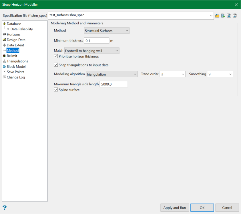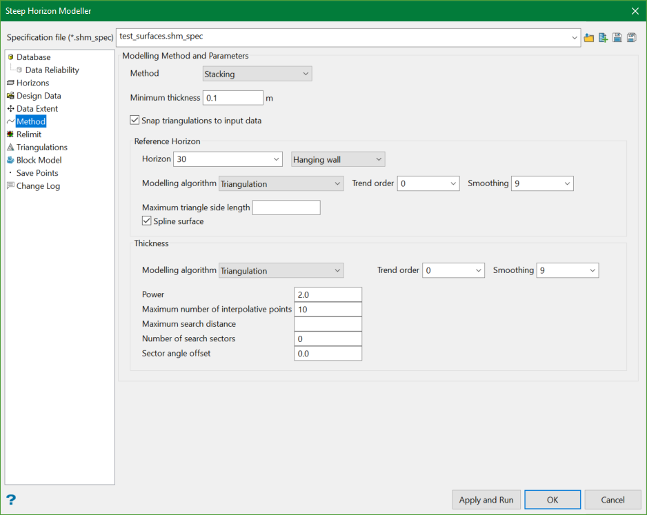 This section allows the selection of horizon modelling methods and parameters.