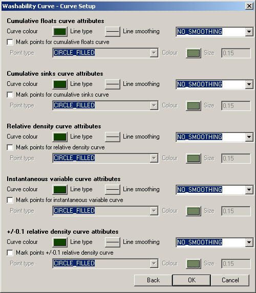 There are 5 curves drawn on the ISO standard washability graph. This allows you to change the graphical attributes of the lines and points used to mark each curve.