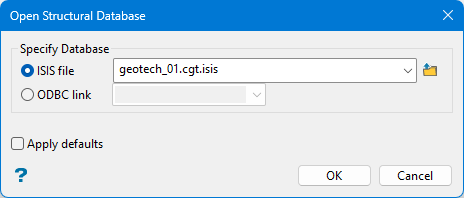 Isis file - Select this option to nominate an Isis database. The available drop-down list displays all Isis database files found within your current working directory. Click Browse to select a file from another location.