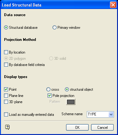 The Load To Stereonet option to load and display data, from either the structural database or the Stereonets Window, as projected objects in the Primary Window.