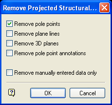 Select this checkbox to remove all the manually entered structural data from the nominated stereonet. Manually entered data is data created through the Create or Slope options (under the Geotech > Analysis submenu), or loaded as such through the Load To Stereonet option.