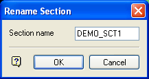 The current section name displays. This can be overwritten with the new name (a maximum of 10 alphanumeric characters).