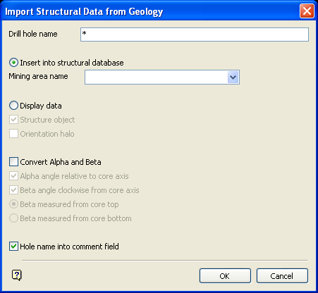 The Database Import option to load structural data from a drillhole database into a structural database.