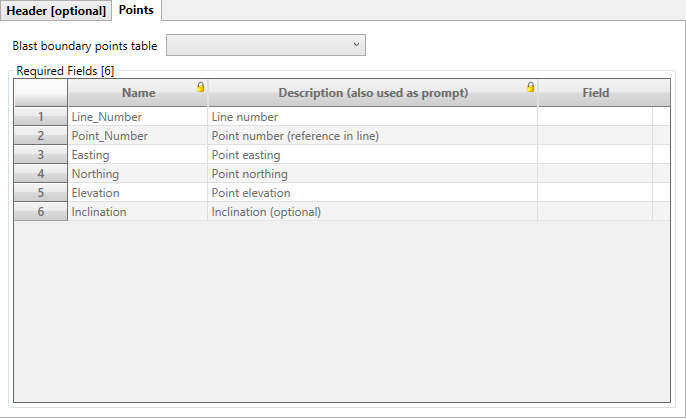 Blast boundary strings must have a Points table and may have an optional Header table.