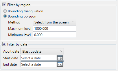This option allows you to constrain the blast holes by date. Select from choice of Audit dates, the select the starting and ending dates.