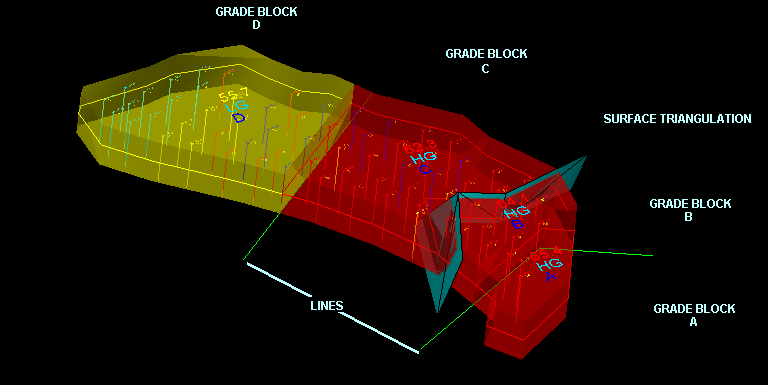 Specify whether you want to use a line, triangulation or whole blast to create the grade blocks. You can mix lines and polygons with surface triangulations.