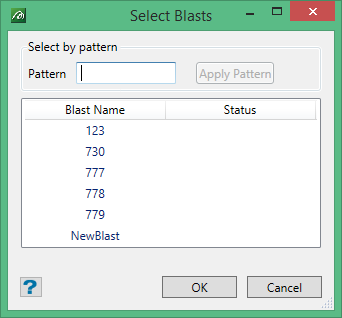 Any blasts that are already loaded are indicated by an arrow icon. To load a single blast, click on the blast name and click OK to load it. To load multiple blasts, hold down the Ctrl key and click the blast names to select them. You can also hold down the Shift key and click on two blasts to highlight those blasts and all the blasts between them in the list.