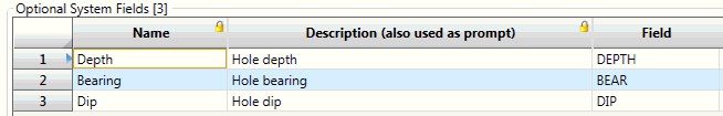 All of the items are optional (although bearing and dip would be meaningless without depth). If these items are not provided, the hole will simply be marked with the appropriate marker at the collar location.