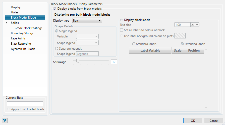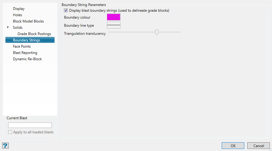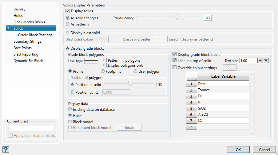 Select this checkbox to display either the grade blocks or blast solid.