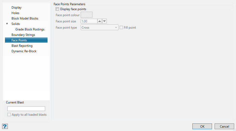 Select this checkbox to display the face points. You will need to select the colour to be used to identify the face points. The colour will be selected from the current colour table.