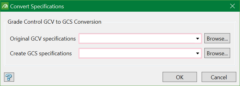 On the Grade Control menu, point to Setup, then click Convert Specifications to display the following panel.