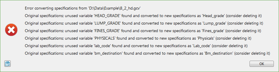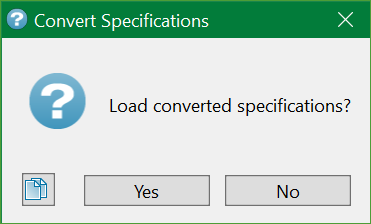After pressing OK on the error report (if any), a pop-up to load the converted specifications will be prompted.