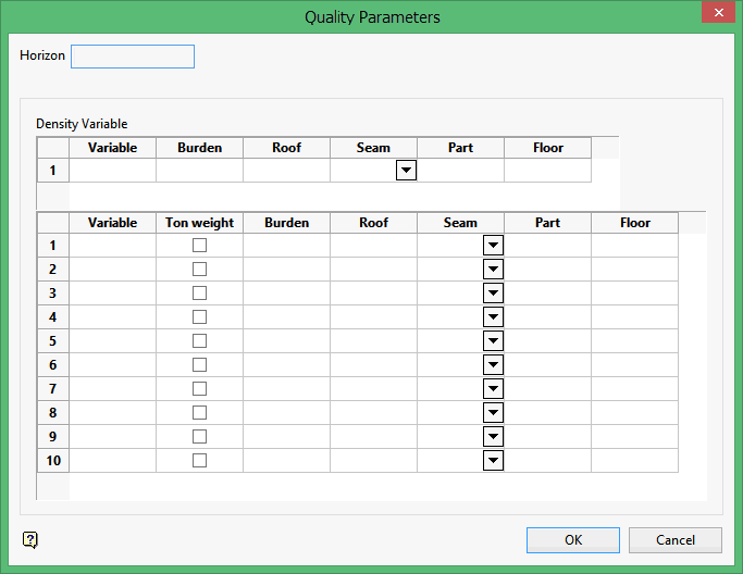 Use Define ROM Quality Parameters to create quality parameters that are used during the creation of the mine model to produce new quality grids based on the seams being composited and the mining parameters.