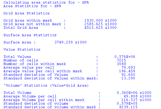 Select this option to report the surface statistics (sum of the grid cell surface areas).
