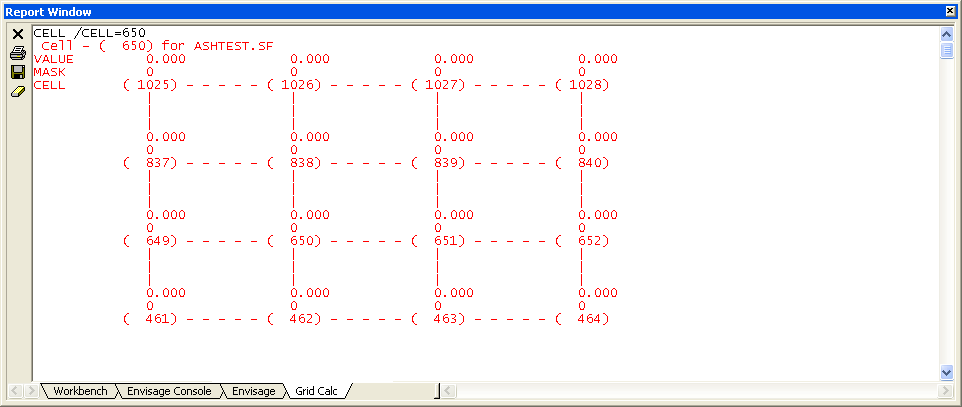 The current cell and the surrounding cell values are displayed in the Report Window.