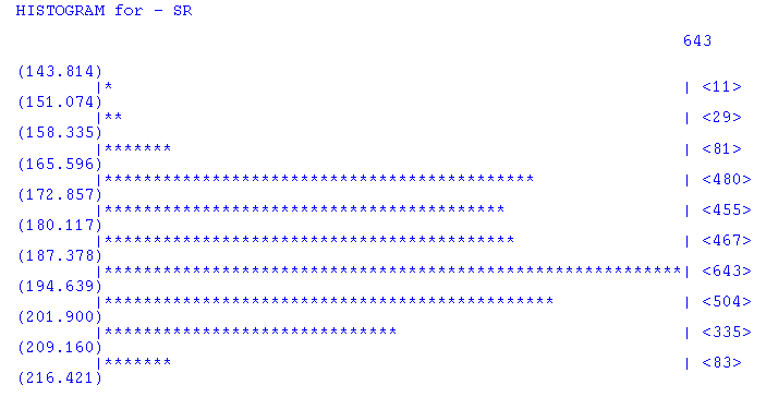 Note: Leave the fields in the Histogram panel blank if you want the Histogram option to determine its own range. Once the OK button has been selected, a histogram with 10 equal divisions between the lowest and highest values will be generated.