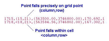 If the point does not fall on a grid point but in a cell, then the location displays in a less/greater than sign: