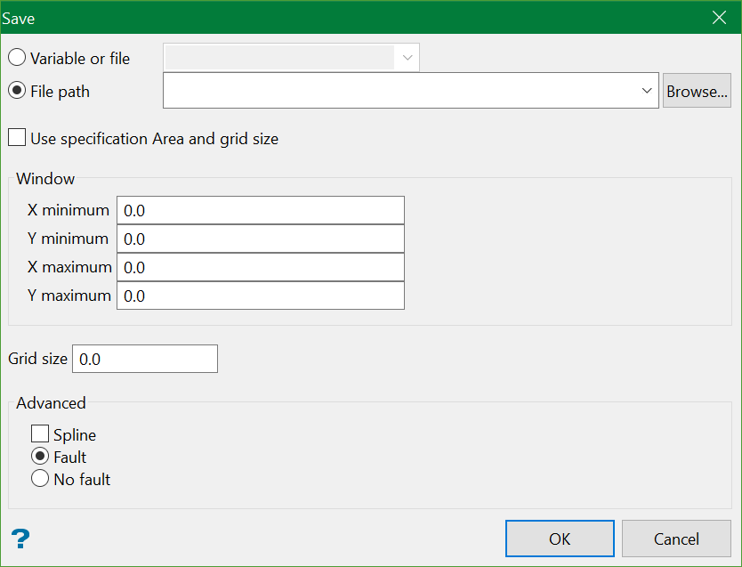 Use Save Grid to save the grid to a file. The grid limits and grid size may be modified as part of the saving process.