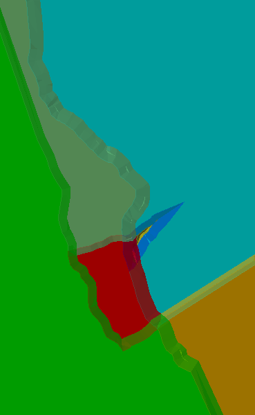 Modification to the specification file or any of the selected surfaces (in Fault Design Data and Fault Surfaces sections) will invalidate merge lists as the number of splits of the base solid will change. As a result, the merge lists will be reset.