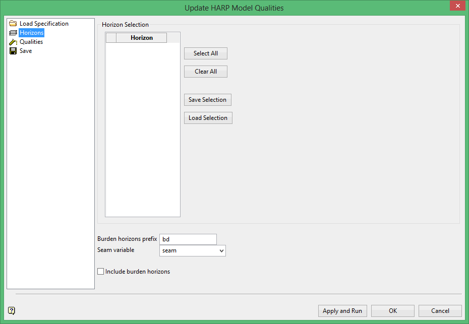 This is optional. Select this checkbox if you wish to add burden horizons to the horizons list, and update qualities of the selected burden horizons.
