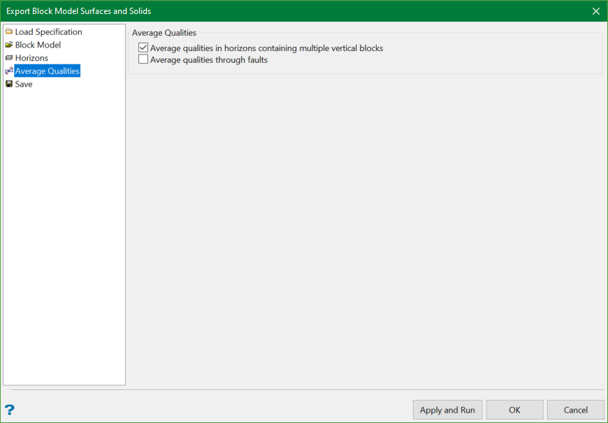 The Average Qualities panel is used if the structural grids were modelled using Fault Blocks in Grid Calc > Integrated Stratigraphic Modelling > Model Stratigraphy.