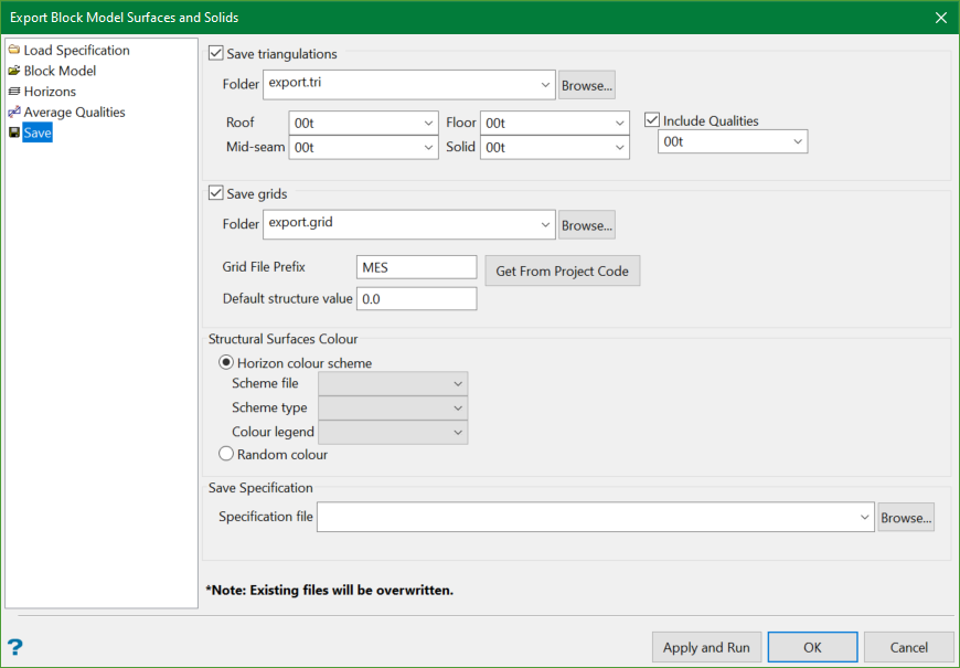 The grid file names optionally include a prefix. If a prefix is required, click the Get From Project Code to populate the Grid File Prefix edit box with the current project code, or type in a different prefix in the edit field. By default, the grid file prefix is GEO.