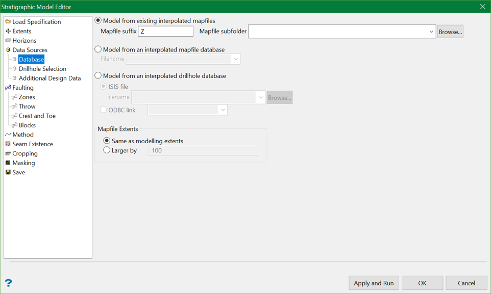 The triangulations and grids can be generated through either using mapfiles, a mapfile database or a drillhole database.