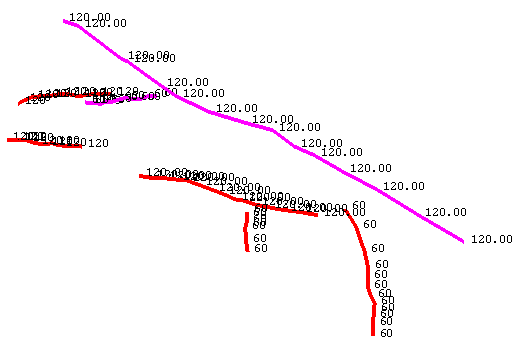 - If Model throws with dips option is not selected, in addition to the W-tag, the names of each point in the throw string specify the dip of the fault in degrees. This information is used to create fault planes (triangulations) which are used to fault the horizon surfaces allowing both thrust and overthrown faults to be modelled.