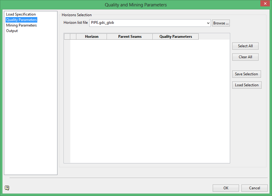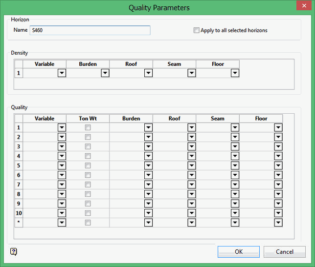 Click the ellipsis button in the Quality Parameters column to configure individual horizons. This step is required.