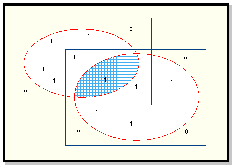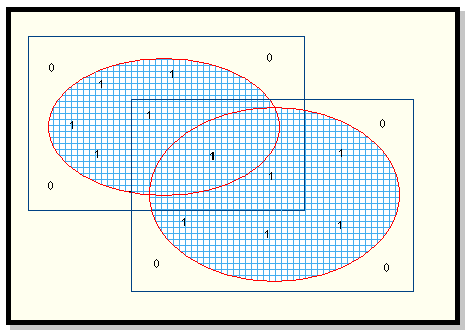 If the masking mode is and, then masks are combined by finding their intersection (Diagram 1). If the mode is or, then masks are combined by finding their union (Diagram 2). The masking mode may be changed using the Project Defaults option (under the Grid Calc > Edit Modelling Defaults submenu), or by using the set command.