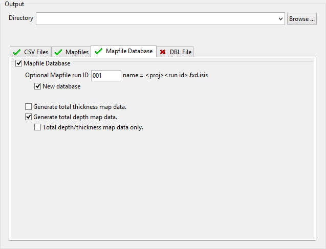 Select this tab to output the information to a mapfile database (.fxd), which is an Isis equivalent to ASCII mapfiles. Mapfile databases provide you with greater security, improved file management, and access to the standard Isis utilities and field calculation functionality.