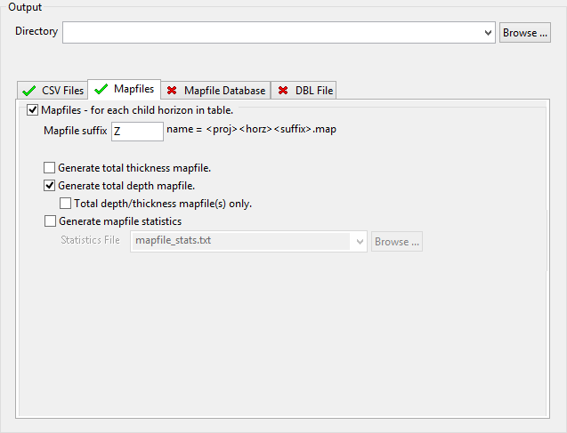 Select this checkbox if you only want to produce total thickness and total depth mapfiles without producing the standard mapfiles for all horizons. This checkbox can only be selected when the Generate total thickness mapfile and/or Generate total depth mapfile checkboxes are selected.