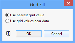 Use the Grid Fill option to update masked grid values. You can choose to update all of the masked grid cells or only those masked grid cells with a specified distance of nearby data points.