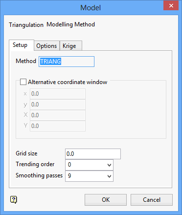 Enter the grid size of the generated model. If a grid size is not specifed, then the default grid size generated or defined at the time the data points were loaded will be used instead.