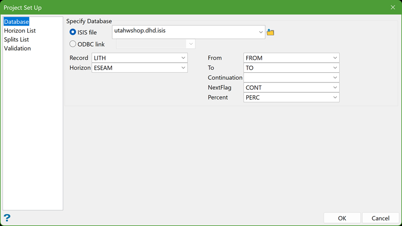Choose the drillhole database that contains the Horizon List. You can select it from the drop-down menu or browse through another location.
