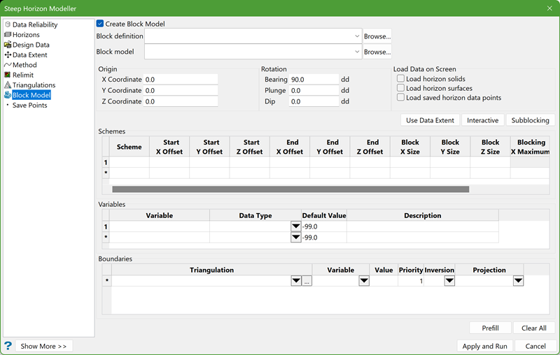 For definition of Origin, Rotation, and Extent fields, please refer to the Block Model.