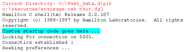 Once you have created this file, start Vulcan in your normal manner. The Vulcan Console tab of the Report Window displays additional information about your startup code and when you quit Vulcan it will display information about your cleanup code.