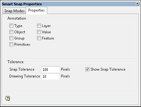 Snap to Points mode etc., when using Smart Snap mode. One or more of the available checkboxes can be ticked, however, the Indicate checkbox must be ticked in order to use the Smart Snap functionality. If the Indicate checkbox is not ticked, then all checkboxes under the Snap Modes tab will be disabled, i.e. greyed out.