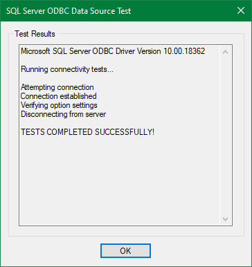 - Test Data Source should report back that the tests are completed successfully. If there are errors, please review the steps above as it may be security or network related.