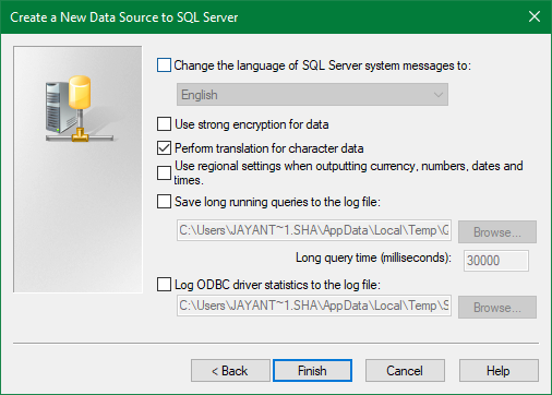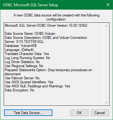 ODBC-Vulcanhere), some description (optional) and, then the SQL Server name that you want to connect to and click Next.