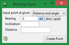 Refers to the amount of deviation from the last digitised point. The inclination value needs to be entered in decimal degrees. A positive value results in the point being projected above the horizon, and a negative results in the point being projected below. |