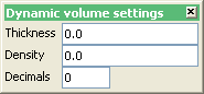 The Dynamic Volume Settings toolbar is used to control the thickness and density values for the current Vulcan session. When the dynamic volume functionality is in use, the current thickness and density values displays through the Status Bar.