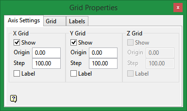 Select this checkbox to label the grid lines. Use the Labels tab to control the labelling parameters. The information that you entered in the X, Y, and Z grid fields is used to determine the origin and step size of the annotations.