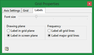 Choose the plane in which to place the labels. You can choose to display the labels in the screen plane, in which case they will always be visible regardless of the rotation of the grid, or in the grid plane. |
