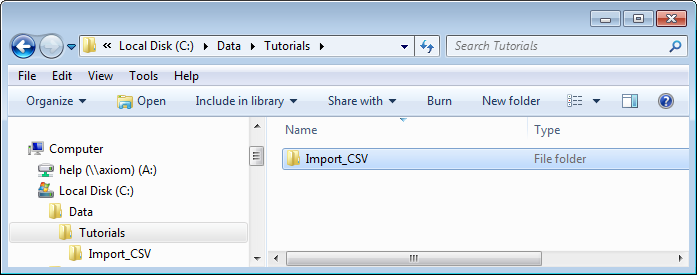 Create a new folder on your local drive. For this tutorial, we will use a folder called C:\Data\Tutorials\Import_CSV\.