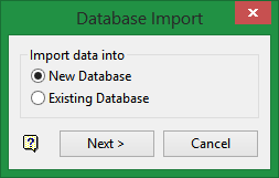 On the Utilities menu, point to Import, then click Tables to display the Database Import panel. Select New Database, then click Next.
