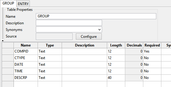 Figure 9: The GROUP table includes all the fields that are in the sample_GROUP.csv file.