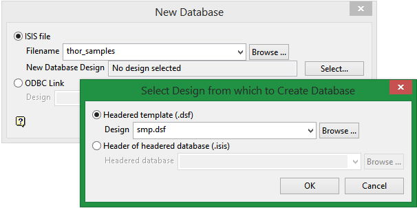 Enter a name for the new database. In this case, we will use ‘thor_samples’. For New Database Design, click Select. This will bring up a new panel. Select the smp.dsf template you just created. Notice that your template now has a