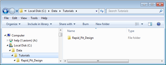 Create a new folder on your local drive. For this tutorial, we will use a folder called C:\Data\Tutorials\Rapid_Pit_Design\.